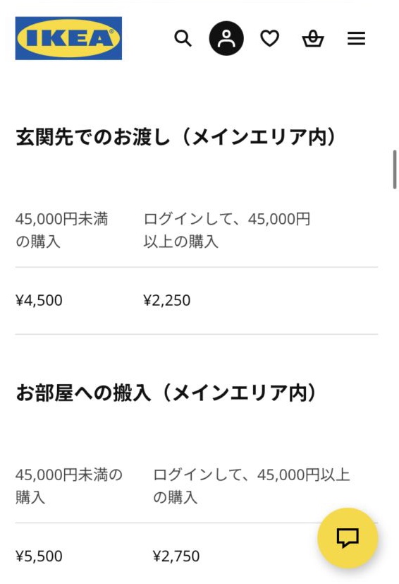 そんなわけで、IKEA family だと45000円以上の購入で送料半額。シーツ類も購入したので余裕で超えた。使っていたマットレス(ダブル)を回収してもらうことにしたので、配送方法はお部屋への搬入となり配送料は2750円となりました。