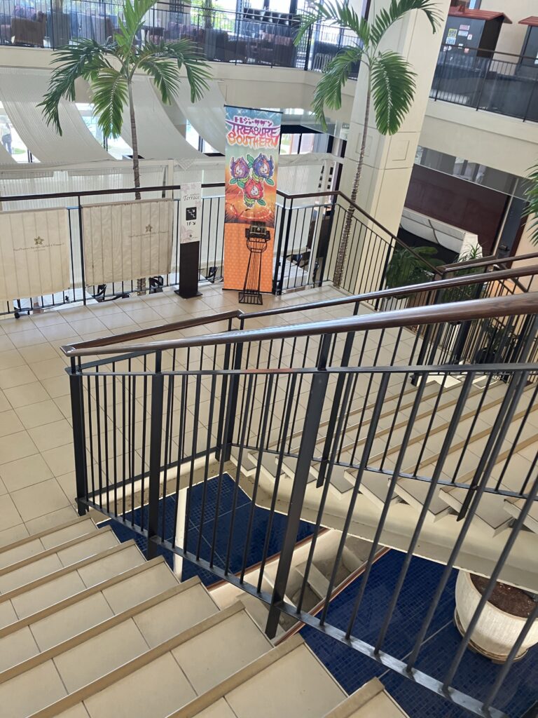 ここの下を降りて一階に降りるとあります。2階がチェックインカウンター。