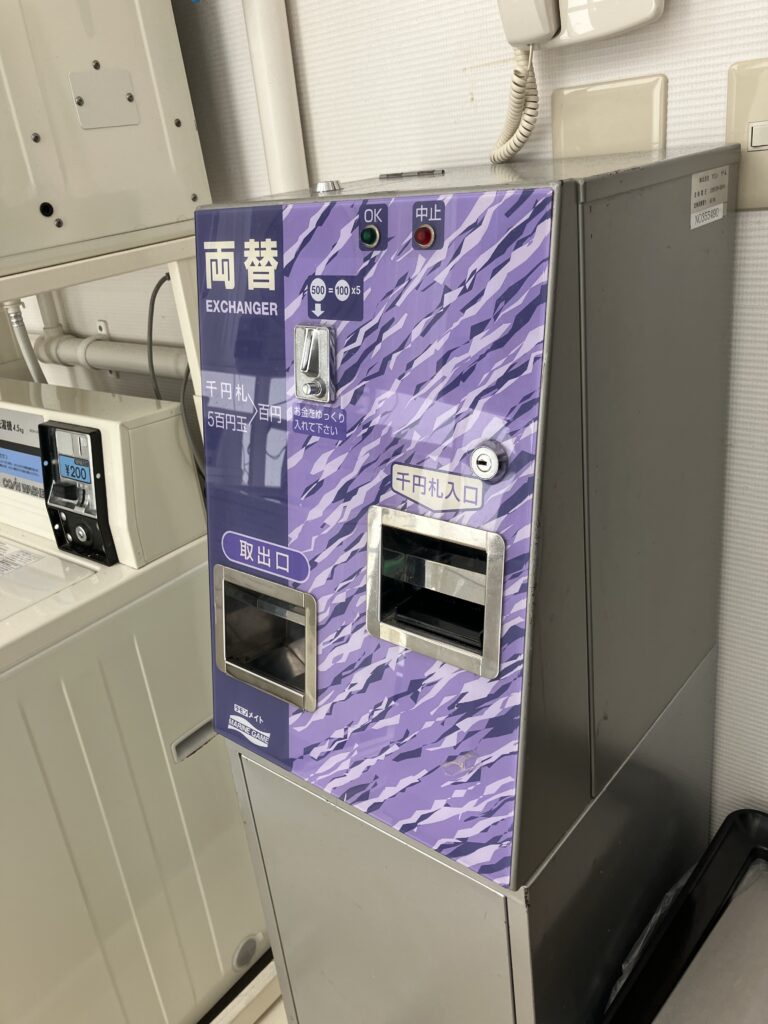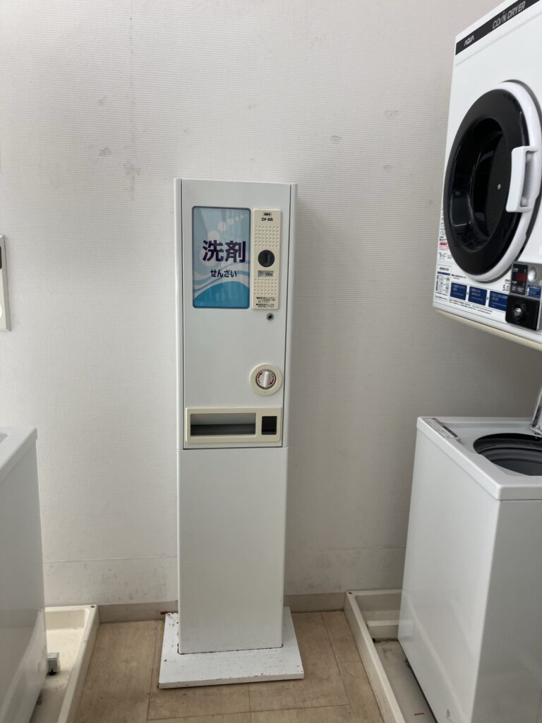 両替機あり。ここは洗剤が必要。使い慣れている洗剤を自宅から持っていくか、買うか。