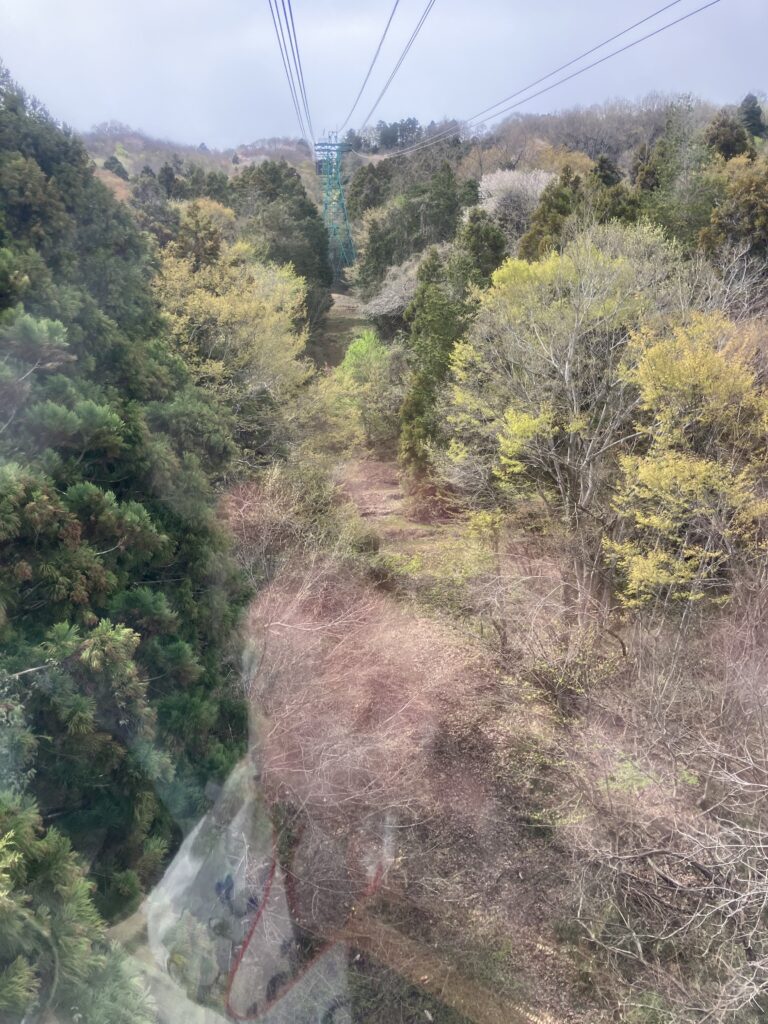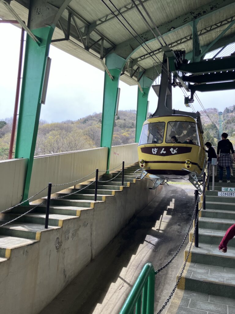 お昼休憩に重なりしばらく待ちましたが、10〜15分毎に運行しているようです。次はロープウェイ乗り場まで出発〜